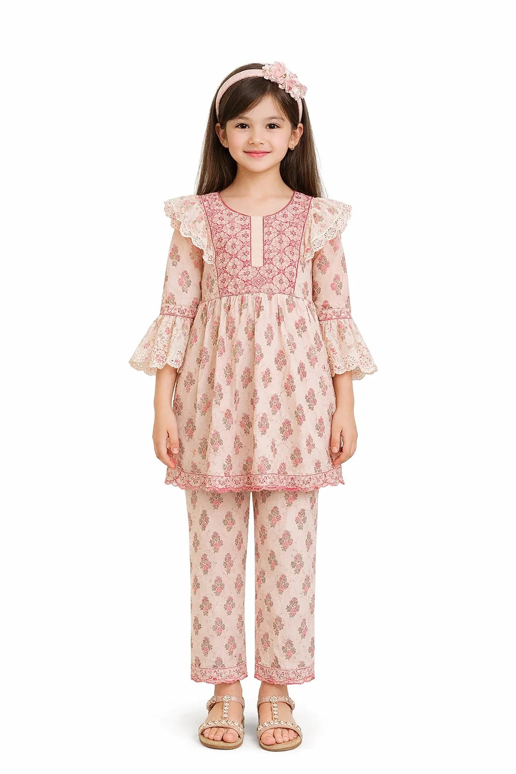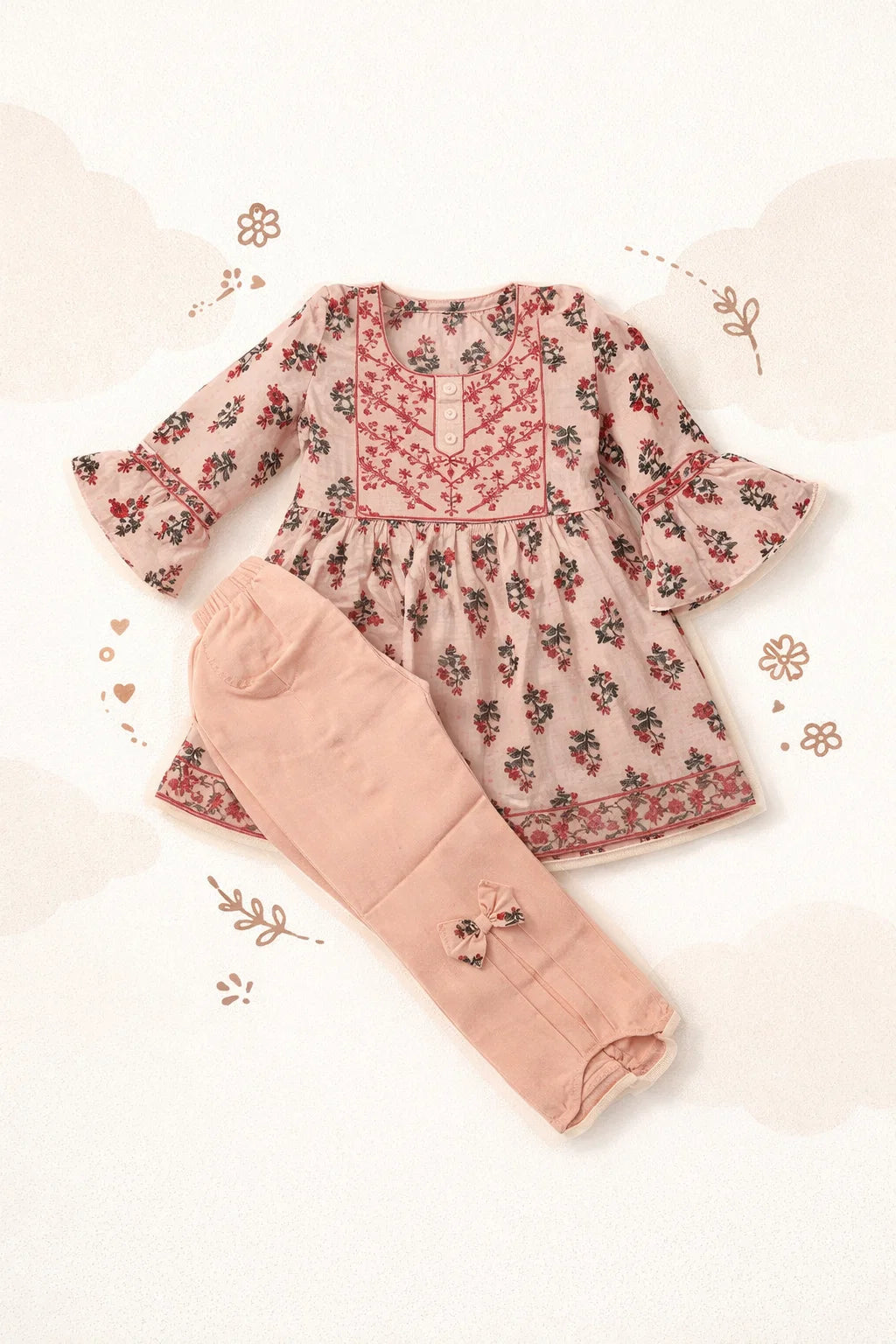 Give your little girl a stylish, comfortable, and adorable look with this 2-piece floral outfit. Designed with soft fabric and elegant detailing, this dress offers both comfort and charm — perfect for daily wear, outings, parties, and winter styling.