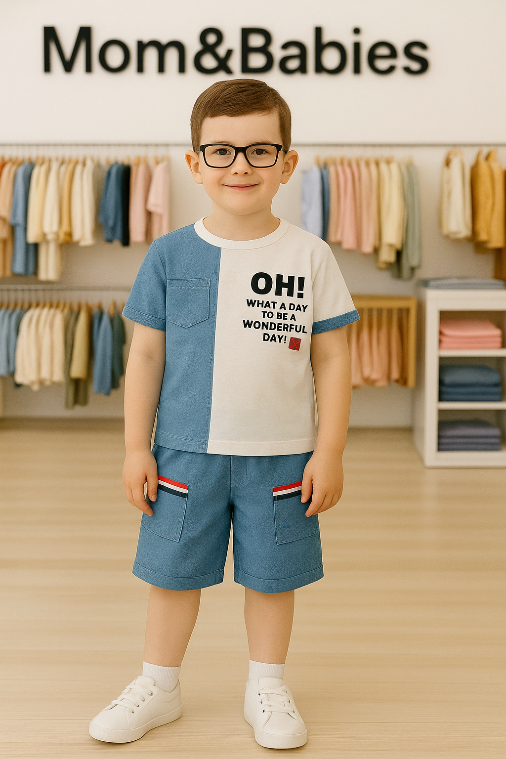 This Baby Boy T-Shirt & Shorts Suit is made with soft, breathable cotton, perfect for everyday use. The trendy half-and-half T-shirt design and stylish shorts make your toddler look adorable while staying comfortable all day long.